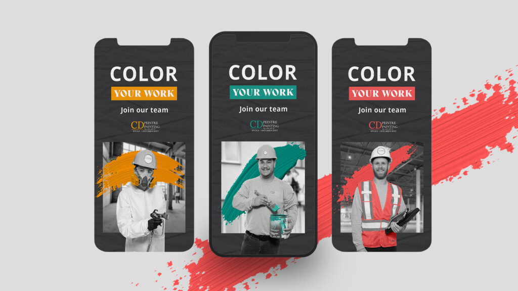 La compagnie CD Peintre, bien implantée dans sa région, faisait face à des défis importants liés à l’attraction et à la fidélisation de la main-d’œuvre. Évoluant dans un secteur particulièrement concurrentiel, où plusieurs entreprises se disputent les mêmes talents, elle souhaitait trouver des moyens concrets et distinctifs pour se démarquer comme employeur de choix auprès de la population locale et des travailleurs spécialisés. L’équipe de direction nous a donc sollicités pour les accompagner dans la mise en valeur de leur culture organisationnelle, avec comme objectif principal d’améliorer leur positionnement employeur et de faire rayonner leur identité interne vers l’externe.