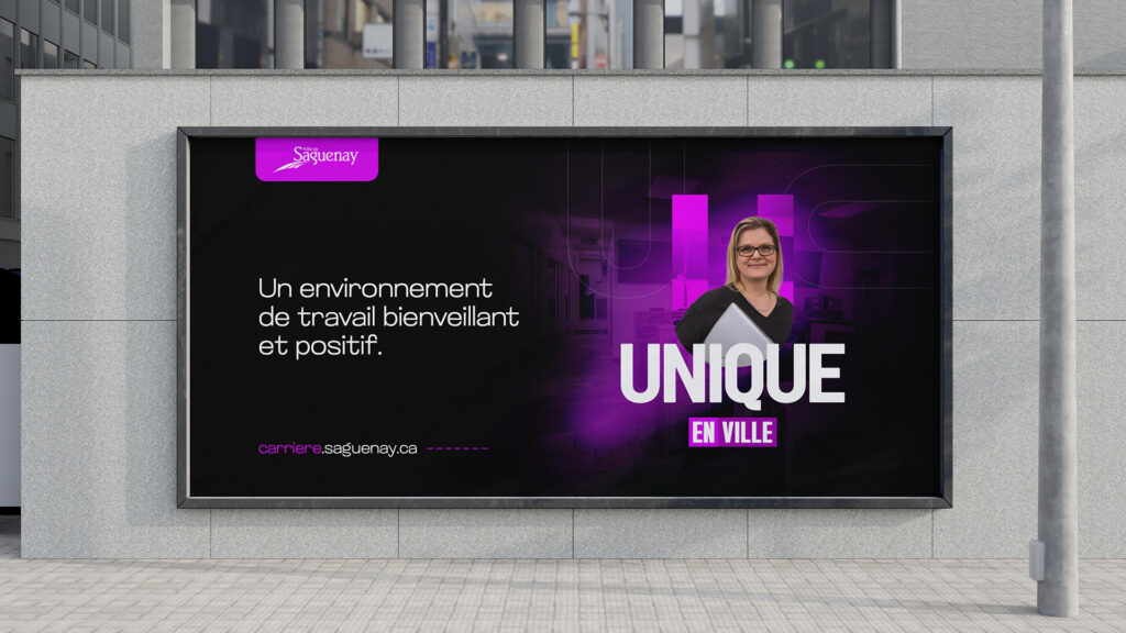 Dans un contexte de transformation organisationnelle et de rareté de main-d’œuvre, la Ville de Saguenay souhaitait structurer et valoriser sa marque employeur afin de mieux refléter sa culture interne, attirer de nouveaux talents et mobiliser l’ensemble de ses équipes autour d’une vision commune. Consciente de la richesse humaine qui anime ses services municipaux, l’organisation désirait également moderniser son image en tant qu’employeur public et renforcer son positionnement régional.